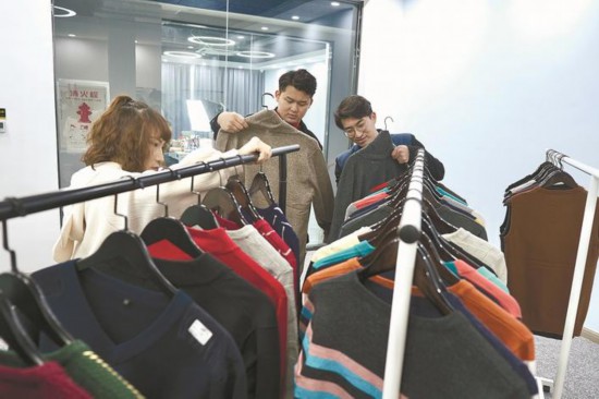 徐子昕和團(tuán)隊(duì)成員正在為一次直播挑選合適的服裝。