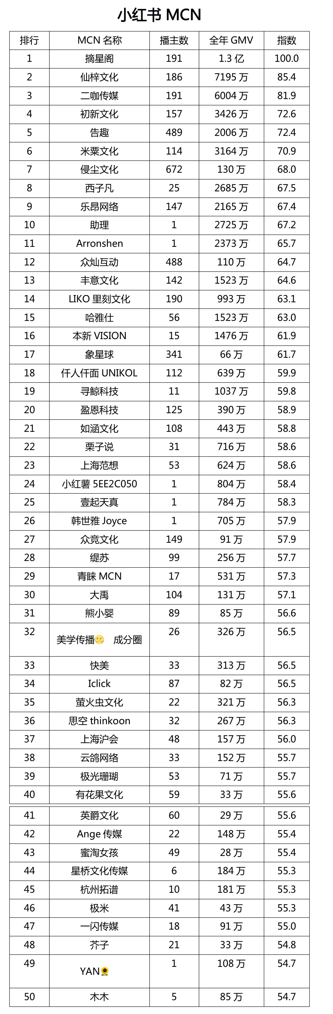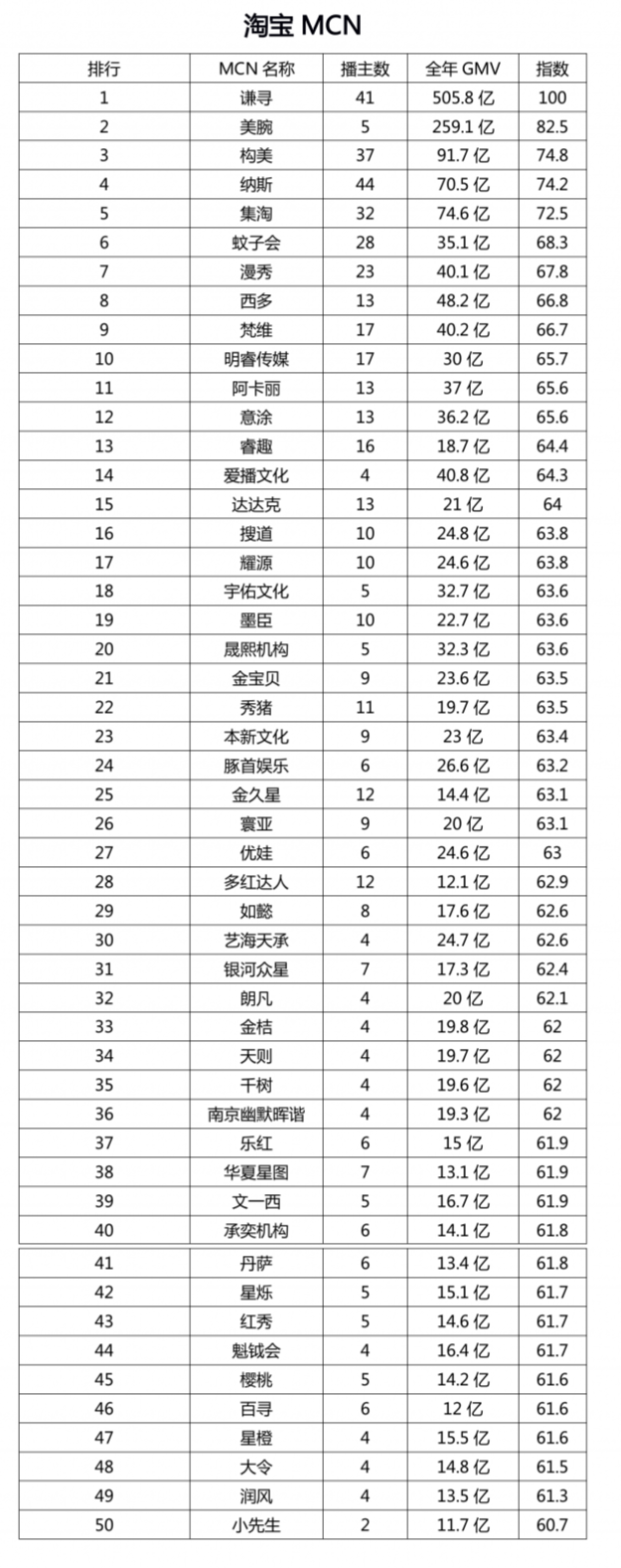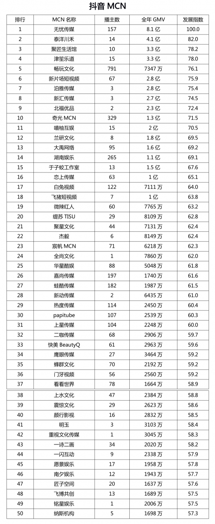 【絕對干貨】各平臺TOP50MCN機構(gòu)名錄