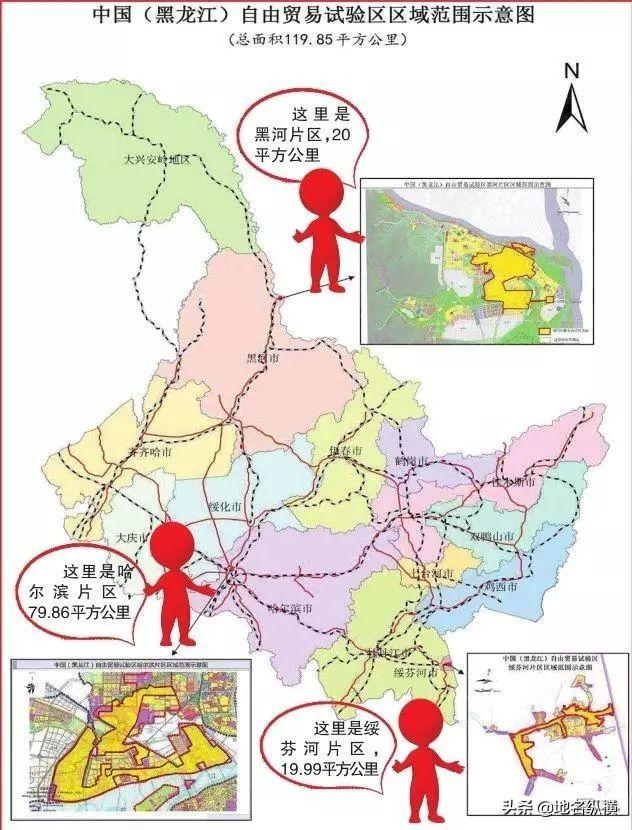 中國(黑龍江)自由貿(mào)易試驗(yàn)區(qū)涵蓋哈爾濱片區(qū)、黑河片區(qū)、綏芬河片區(qū),總面積119.85平方公里,2019年8月30日揭牌。