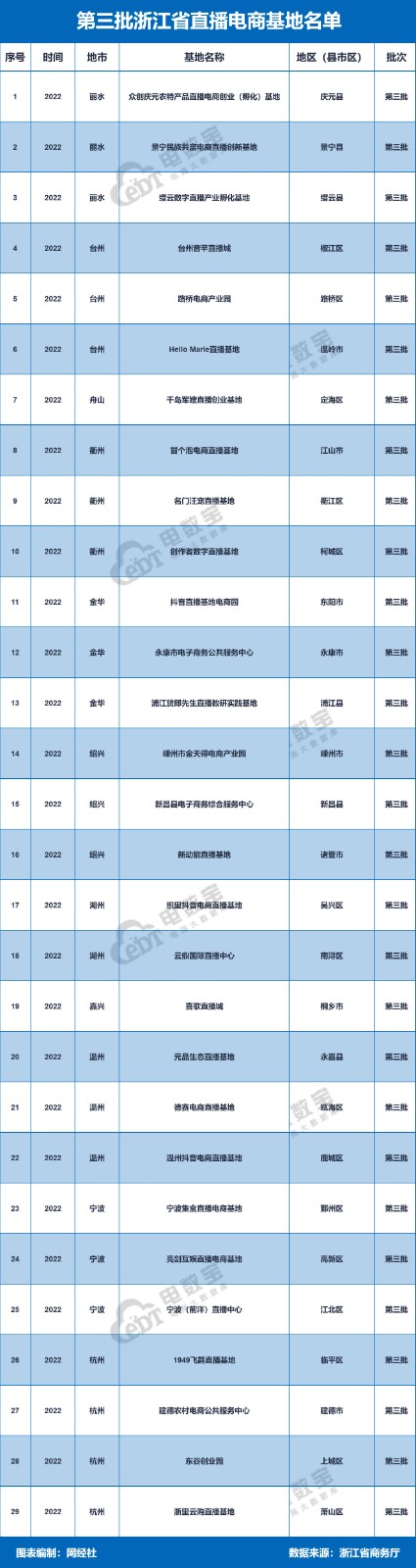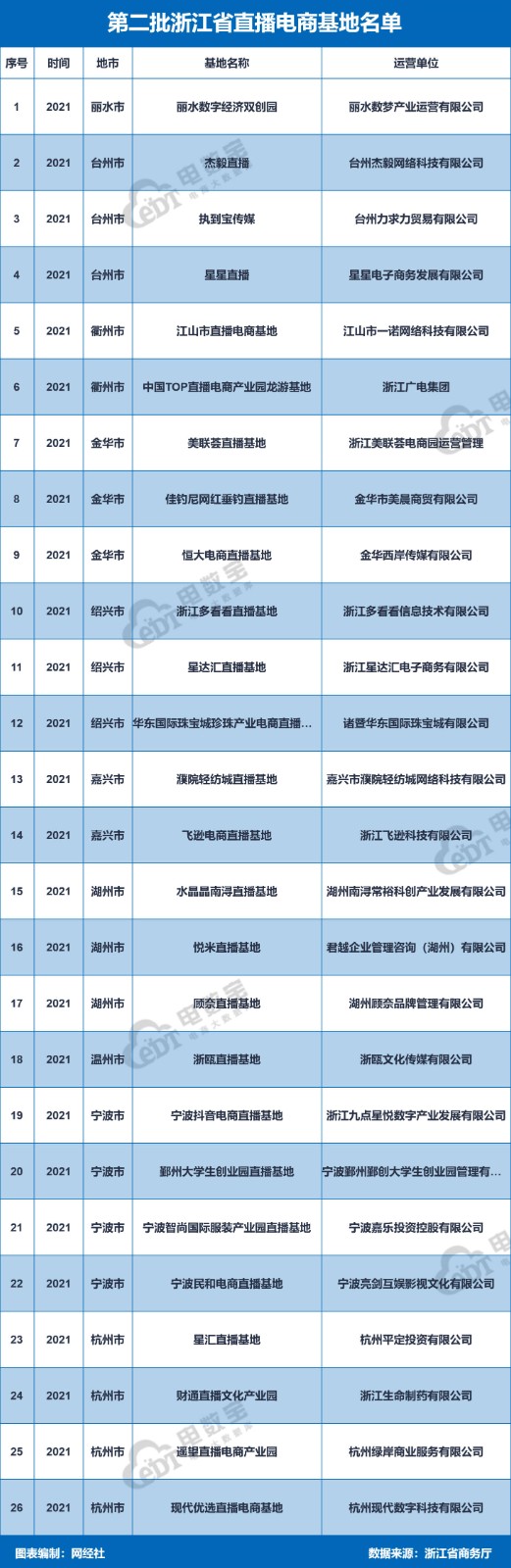 浙江省級(jí)直播電商基地名單公示