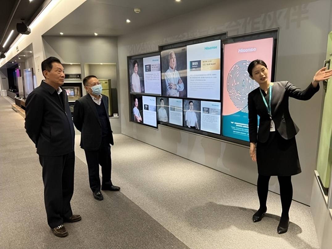 2日中午,王寧會(huì)長(zhǎng)剛剛抵達(dá)青島后便趕往海信集團(tuán)進(jìn)行考察交流。海信集團(tuán)代慧忠高級(jí)副總裁與海信集團(tuán)中國(guó)區(qū)營(yíng)銷總部李龍助理副總裁,總裁辦劉慶江科技合作總經(jīng)理等管理層領(lǐng)導(dǎo)一起陪同王寧會(huì)長(zhǎng)首先參觀了海信總部展示廳。王寧會(huì)長(zhǎng)認(rèn)真聽(tīng)取講解并不時(shí)就關(guān)心的問(wèn)題與身旁的代總裁溝通交流。