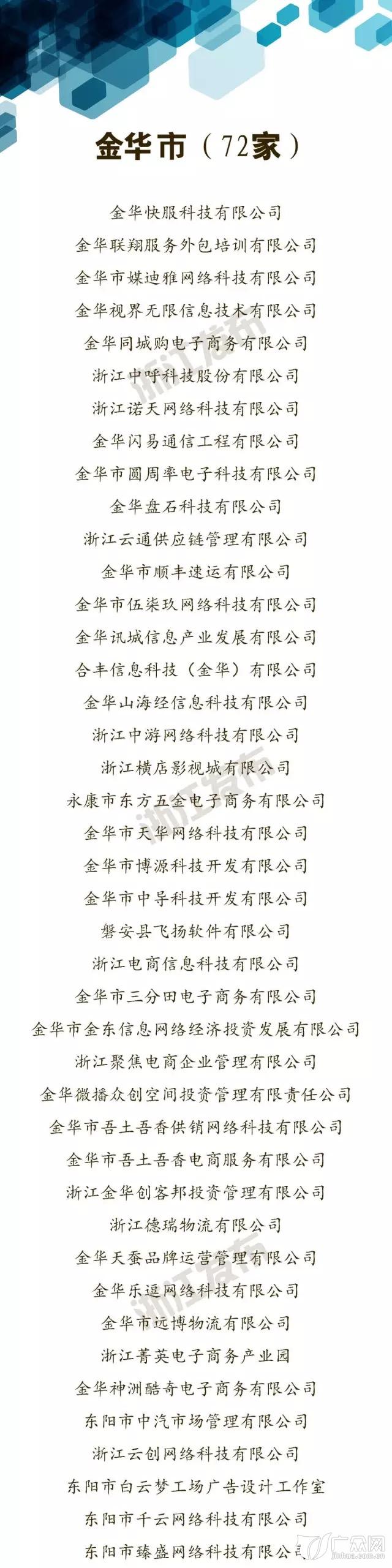 金華共有72家企業(yè)入選《浙江省電子商務(wù)服務(wù)企業(yè)名錄》