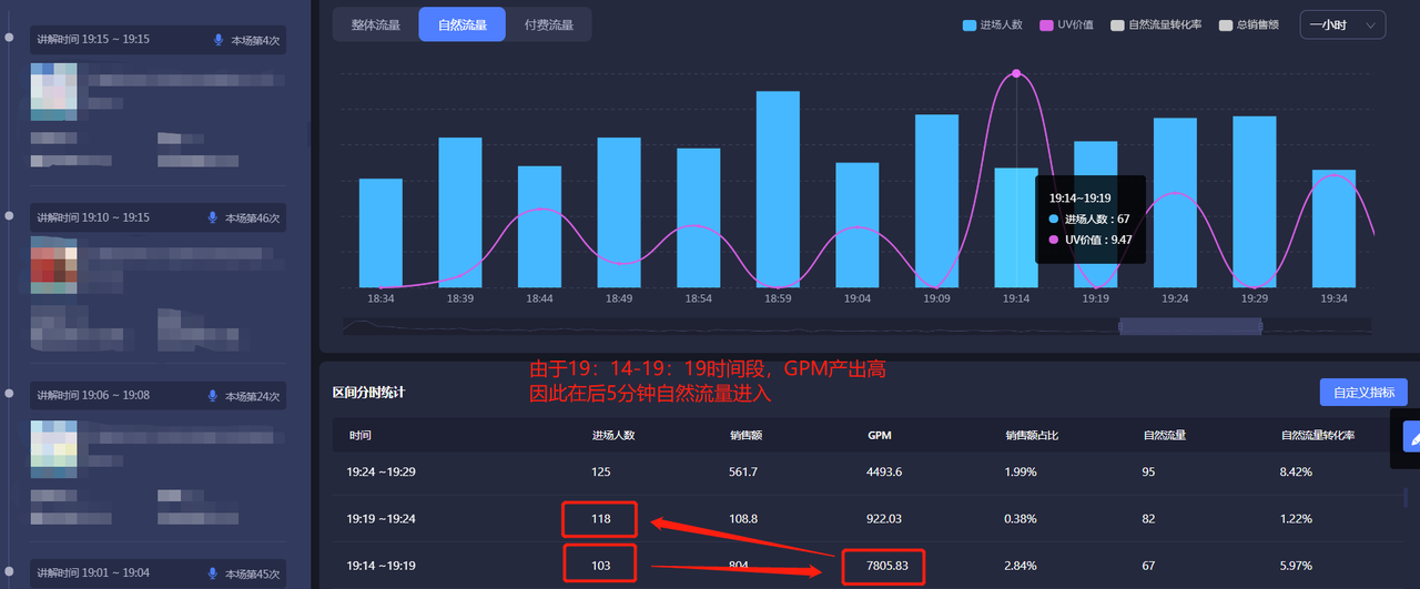 此時(shí)要及時(shí)上爆款或福利款做沖刺,拉升直播間數(shù)據(jù),提高五分鐘成交密度,確保直播間自然流量轉(zhuǎn)化率、GPM等各項(xiàng)數(shù)據(jù)能回升到上時(shí)間段水平,繼續(xù)獲得直播推薦。