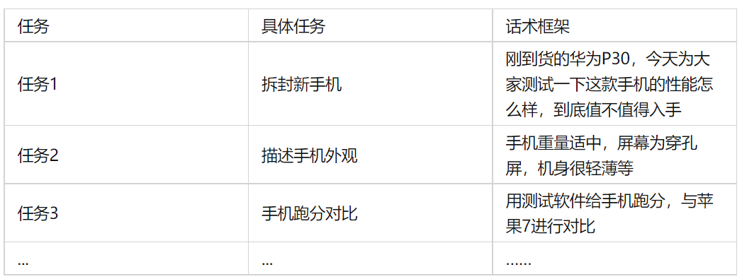 確定方案指確定拍攝方案,方案主要包括時(shí)間線、拍攝場(chǎng)景、話術(shù)三個(gè)部分。
