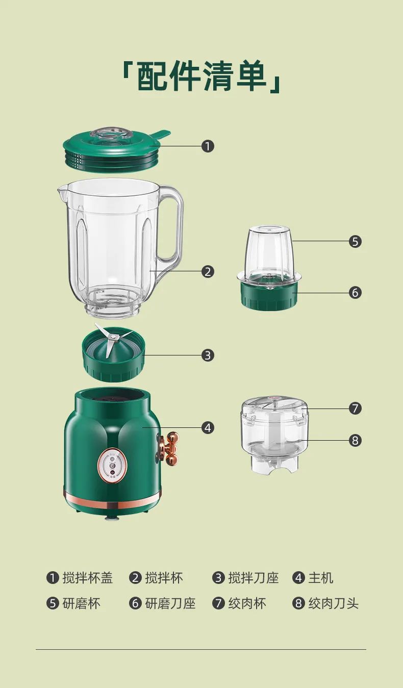 2、食品級PC材質(zhì)攪拌杯,攪拌杯1500ml,600ml絞肉杯,300ml研磨杯。3、四葉精鋼刀頭3D繞流設計,大概率銅芯電機大功率轉(zhuǎn)速電機,集合精鋼刀頭研磨切割,22000r/min運轉(zhuǎn)速度,旋轉(zhuǎn)檔位個性,