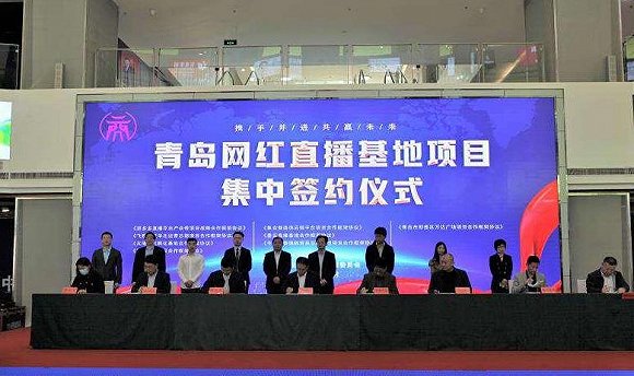 青島網紅直播基地項目集中簽約儀式在即墨區(qū)家居博覽中心舉行